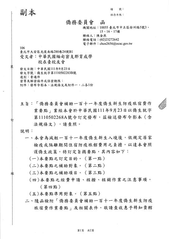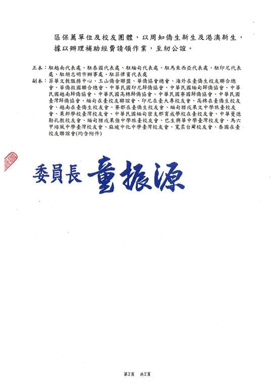 1110928 僑務委員會公文 (僑生就字第1110502283B號)