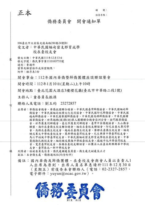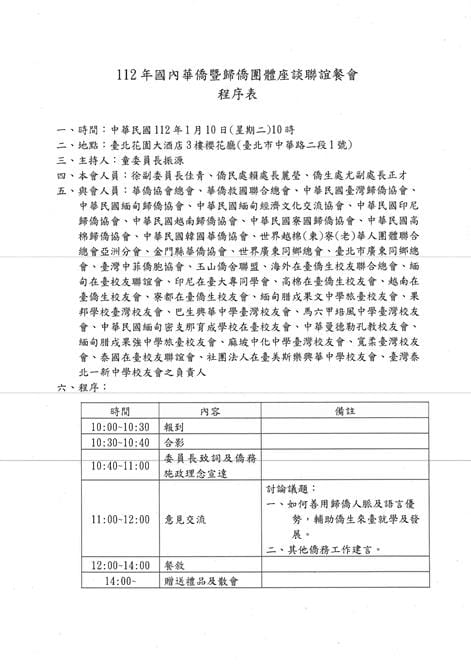 112年國內華僑暨歸僑團體座談聯誼餐會