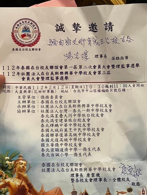 112年泰國在台校友聯誼會第一屆第二次會員大會暨理監事選舉