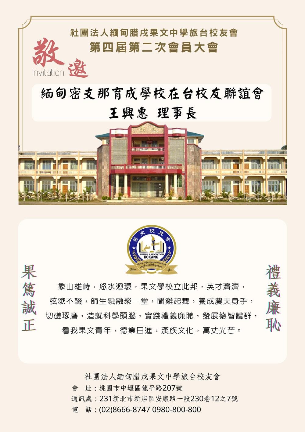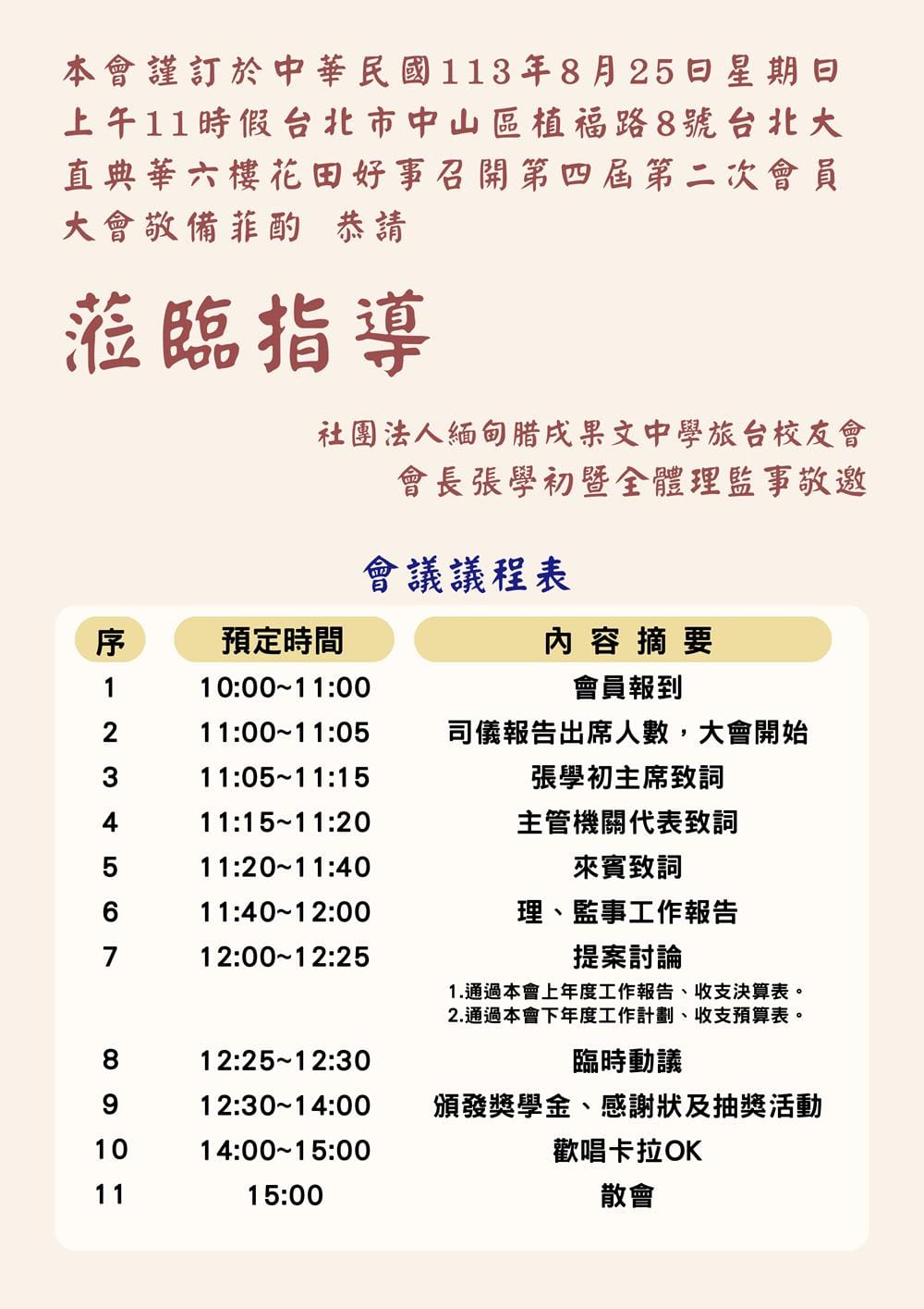 1130825 社團法人緬甸臘戌果文中學旅台校友會 會員大會